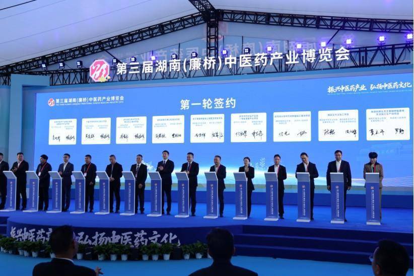 签约仪式现场。单位供图11月8日,第三届湖南(廉桥)中医药产业博览会在邵东廉桥医药工业科技园开幕。开幕式现场签订中医药项目18个,签约总金额14.51亿元。